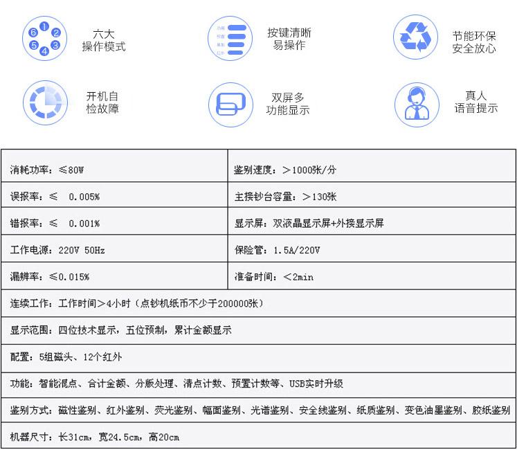 點(diǎn)鈔機(jī)類型: 插電式<br>屏幕數(shù)量: 雙屏<br>級(jí)別: B類<br>顏色分類: 銀黑色 灰黑色