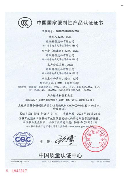 智能柜員機(jī)(ITM)標(biāo)準(zhǔn)版CCC證書