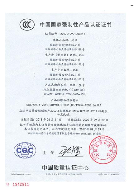 存取款循環(huán)出納機(jī)(WRA612)CCC證書