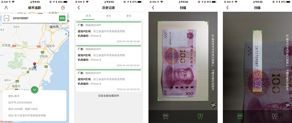 用戶可通過該應(yīng)用進(jìn)行多種方式的錢幣查詢,可通過紙幣冠字號(hào)查詢或者紙幣掃描查詢來(lái)查看紙幣流向以及判定紙幣的真?zhèn)巍?/p>