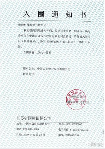 近日,維融科技股份有限公司收到江蘇省國際招標公司發(fā)出的《中國農(nóng)行股份有限公司點鈔機、清分機入圍通知書》(項目編號:JITC-1905WW2099),確定維融科技中標,中標產(chǎn)品包括:人民幣點鈔機、點扎一體機。 維...