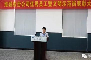 為表彰先進(jìn)樹立典型,進(jìn)一步激發(fā)員工的積極性、主動性與創(chuàng)造性,7月26日下午,在新建生產(chǎn)大樓一樓舉行了維融股份公司2016年第二季度優(yōu)秀員工暨文明示范崗表彰大會,公司領(lǐng)導(dǎo)及全體員工參加了表彰會。 會上,公...