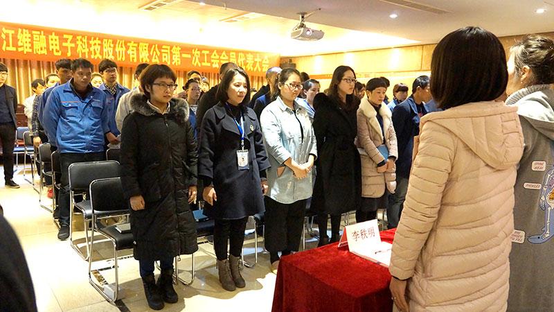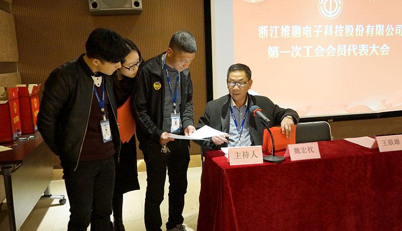 大會(huì)在雄壯的《中華人民共和國(guó)國(guó)歌》聲中隆重開(kāi)幕。主持人宣讀了浙江蒼南工業(yè)園區(qū)總工會(huì)有關(guān)批復(fù)文件,工會(huì)籌備組代表李秩明作籌備工作報(bào)告,通過(guò)了第一次工會(huì)會(huì)員代表大會(huì)選舉辦法。會(huì)議依照《工會(huì)法》、《中國(guó)工會(huì)章程》采取差額選舉的辦法,經(jīng)過(guò)公平、公正、公開(kāi)的無(wú)記名投票,選舉李秩明、蔡增弟、魏舜軍、楊素葉、張欽樂(lè)、陳宣總、魏小蘭為維融科技股份有限公司第一屆工會(huì)委員會(huì)委員,魏舜軍、倪麗義、陳登婕為工會(huì)經(jīng)審委委員,蔡增弟、馬長(zhǎng)虹、羅玲為女職委委員;隨后召開(kāi)的維融股份第一屆工會(huì)委員會(huì)、工會(huì)經(jīng)費(fèi)審查委員會(huì)、女職工委員會(huì)會(huì)議中選舉李秩明同志為工會(huì)主席、蔡增弟同志為副主席;選舉魏舜軍同志為經(jīng)費(fèi)審查委員會(huì)主任、蔡增弟同志為女職工委員會(huì)主任。