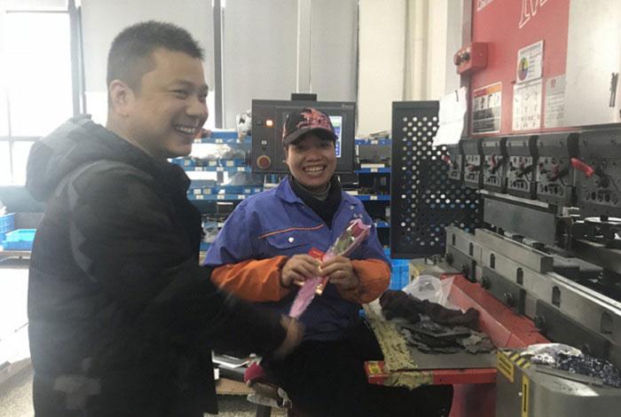 3月8日,維融股份組織開展“三八”婦女節(jié)女職工慰問活動(dòng)。公司黨支部、工會(huì)、女職委一行人,走近車間,為工作在各崗位的女職工送上鮮花和紅包,獻(xiàn)上節(jié)日祝福。據(jù)了解,“三八”婦女節(jié)給女職工發(fā)福利的傳統(tǒng)在維融中已持續(xù)了10多年。