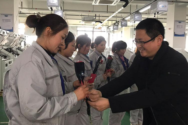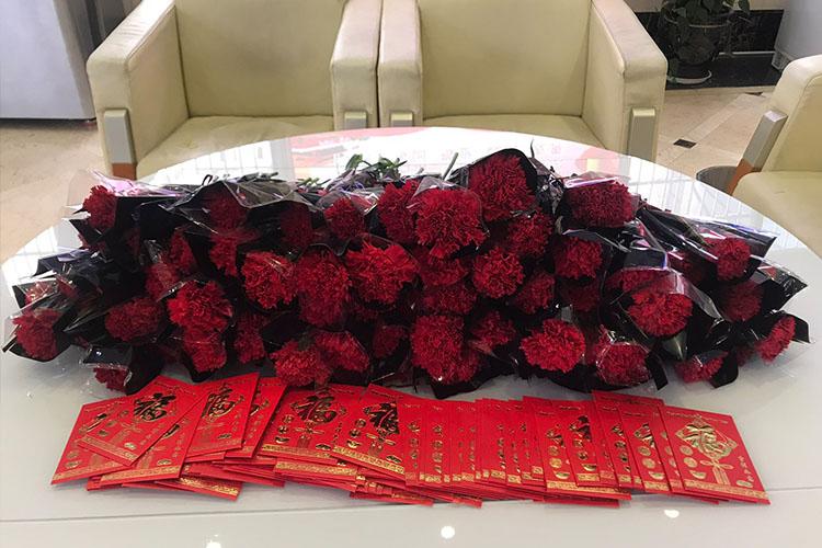 3月8日上午,維融科技領(lǐng)導,集團公司黨支部書記、工會主席一行前往各部門、各車間,為工作在各崗位的女職工送上鮮花和紅包,并獻上節(jié)日祝福。